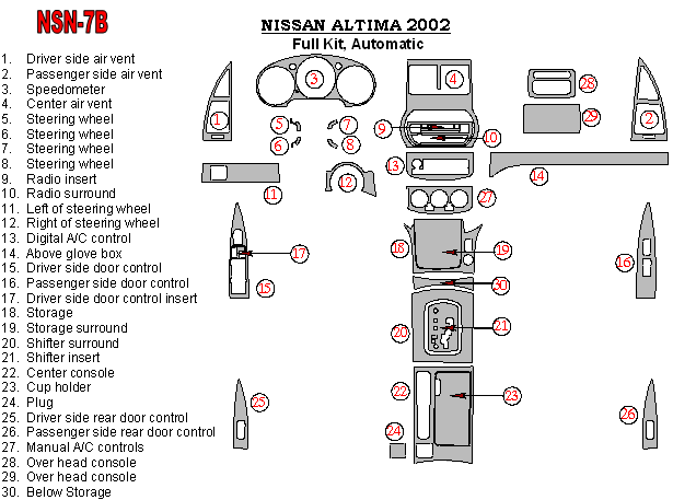 Nissan Altima 2002 - 2002 Dash Trim Kit
