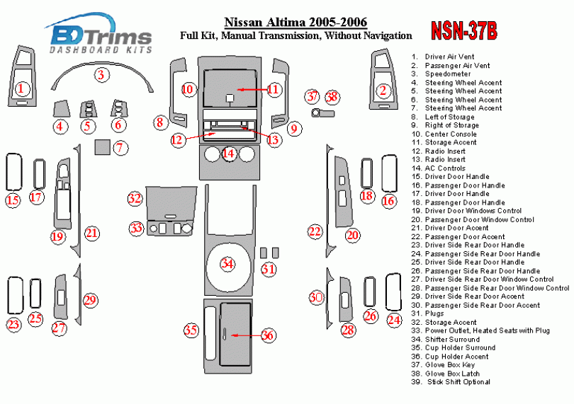 Nissan Altima 2005 - 2006 Dash Trim Kit