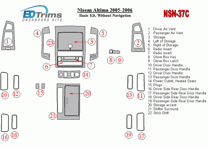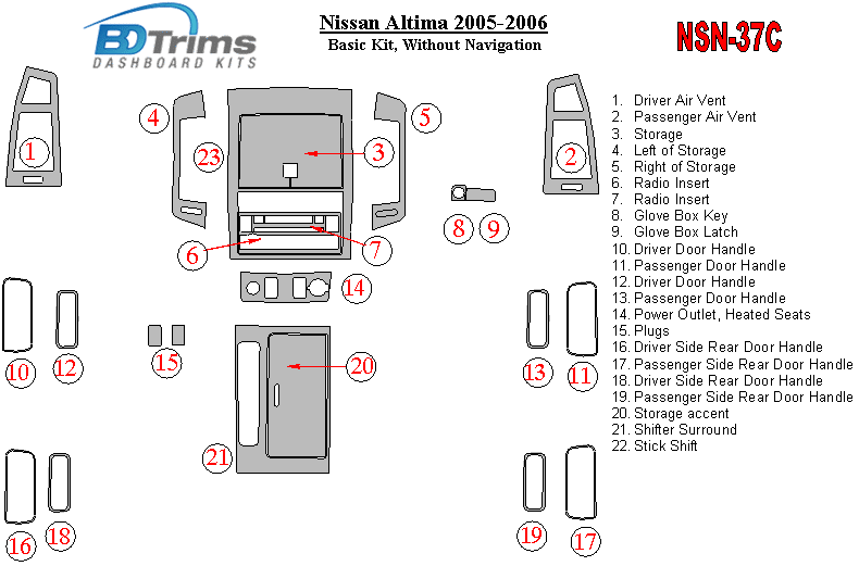 Nissan Altima 2005 - 2006 Dash Trim Kit