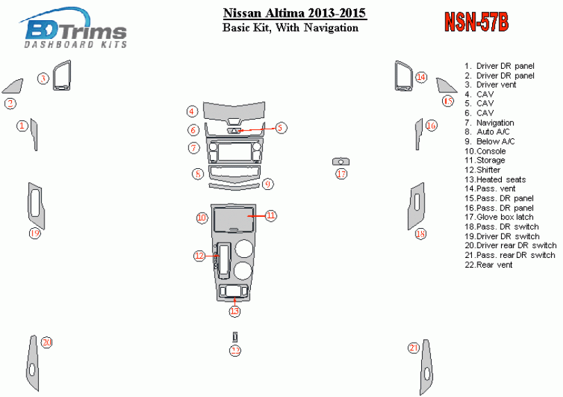Nissan Altima 2013 - 2015 Dash Trim Kit