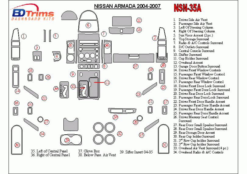 Nissan Armada 2004 - 2007 Dash Trim Kit