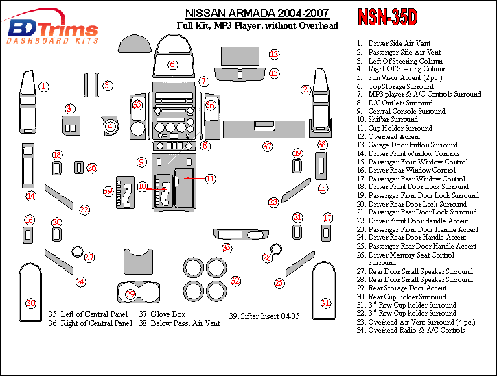Nissan Armada 2004 - 2007 Dash Trim Kit