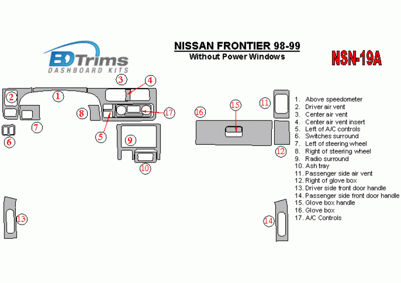 Nissan Frontier 1998 - 1999 Dash Trim Kit