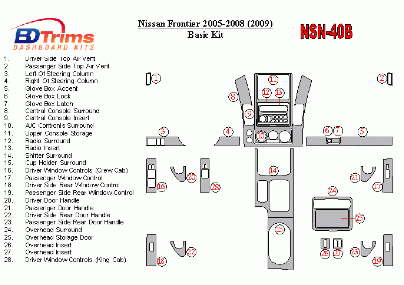 Nissan Frontier 2005 - 2009 Dash Trim Kit