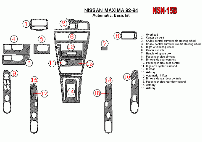 Nissan Maxima 1992 - 1994 Dash Trim Kit