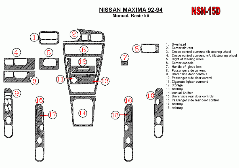 Nissan Maxima 1992 - 1994 Dash Trim Kit