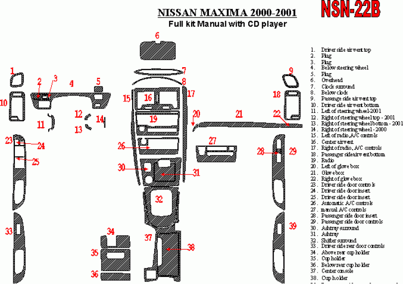 Nissan Maxima 2000 - 2001 Dash Trim Kit