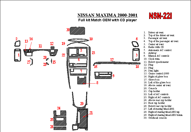 Nissan Maxima 2000 - 2001 Dash Trim Kit