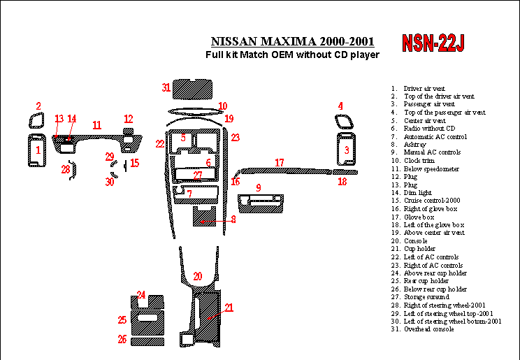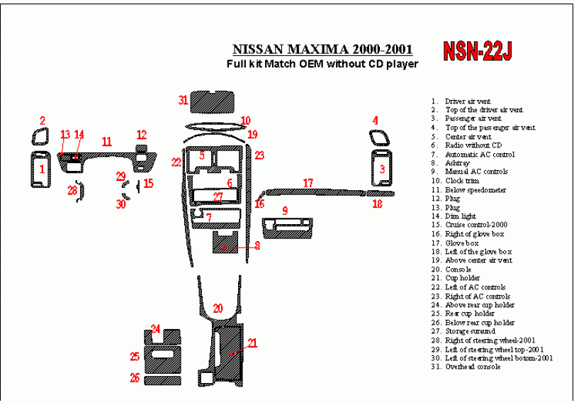 Nissan Maxima 2000 - 2001 Dash Trim Kit