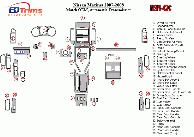 Nissan Maxima 2007 - 2008 Dash Trim Kit