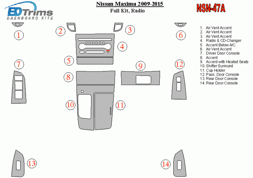 Nissan Maxima 2009 - 2015 Dash Trim Kit