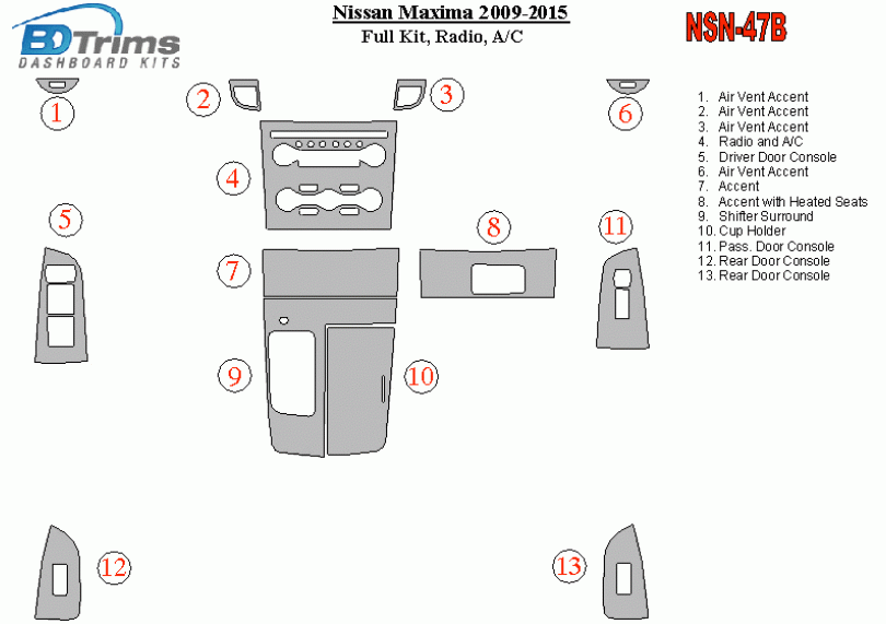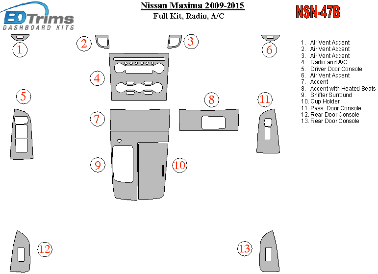 Nissan Maxima 2009 - 2015 Dash Trim Kit
