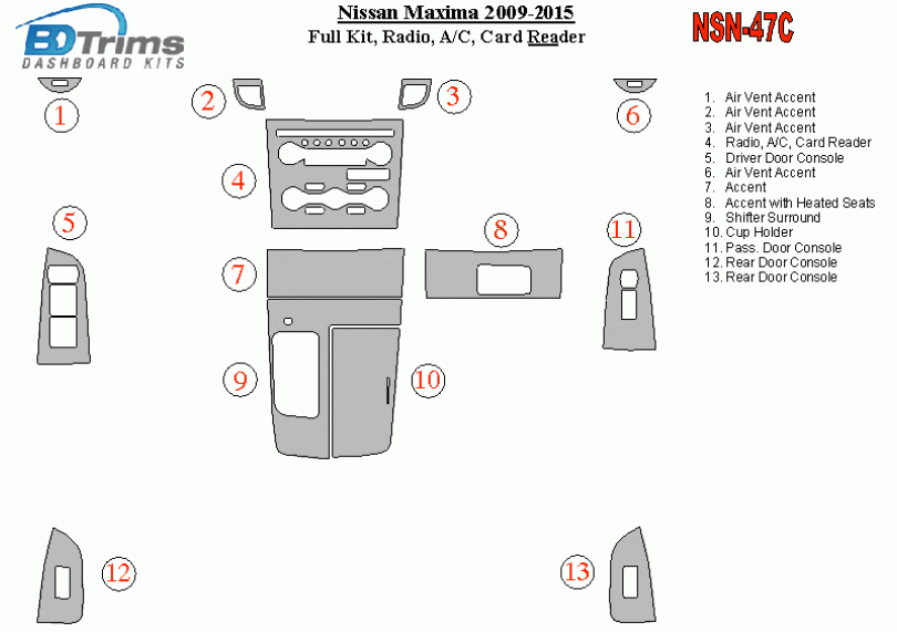 Nissan Maxima 2009 - 2015 Dash Trim Kit