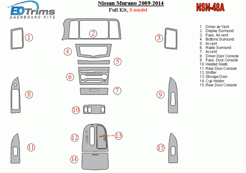 Nissan Murano 2009 - 2014 Dash Trim Kit