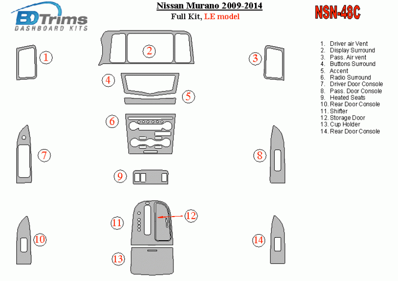 Nissan Murano 2009 - 2014 Dash Trim Kit
