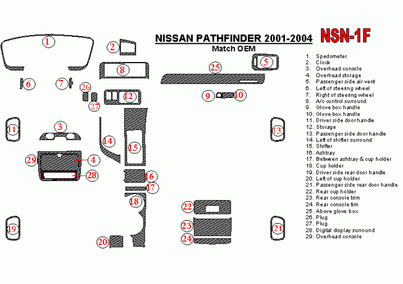 Nissan Pathfinder 2001 - 2004 Dash Trim Kit