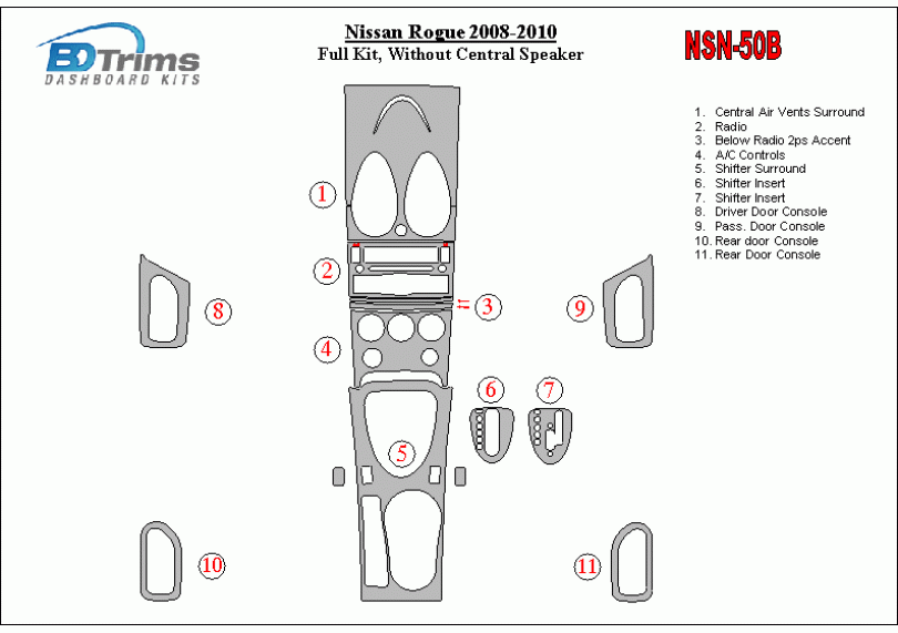 Nissan Roque 2008 - 2010 Dash Trim Kit