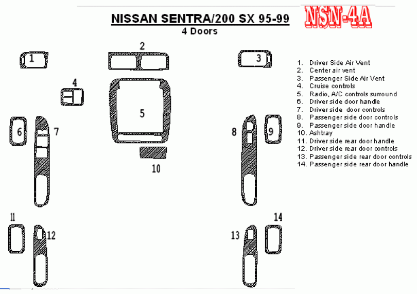 Nissan Sentra 1995 - 1999 Dash Trim Kit