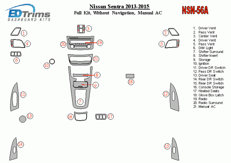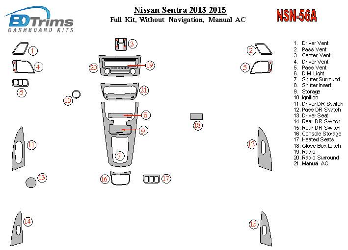 Nissan Sentra 2013 - 2015 Dash Trim Kit