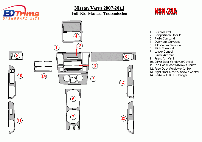 Nissan Versa 2007 - 2011 Dash Trim Kit