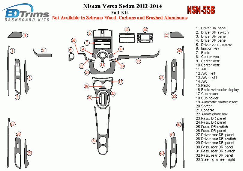 Nissan Versa 2012 - 2014 Dash Trim Kit