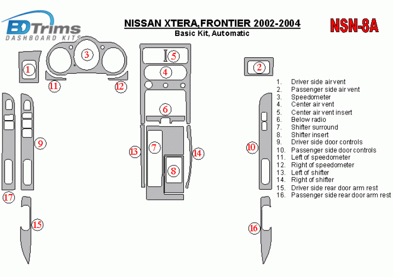 Nissan Xtera 2002 - 2004 Dash Trim Kit