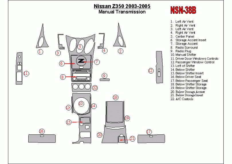 Nissan Z350 2003 - 2005 Dash Trim Kit