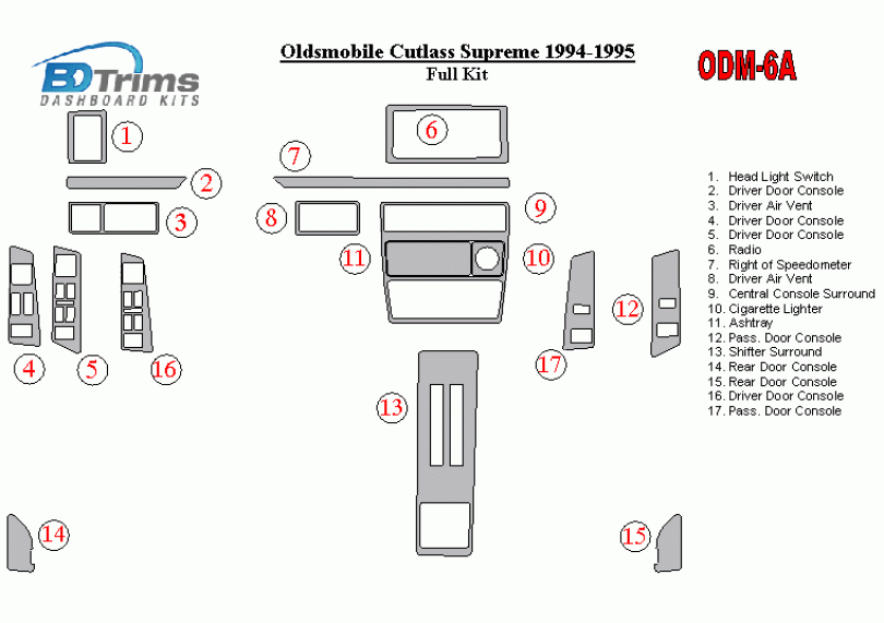 Oldsmobile Cutlass Supreme 1994 - 1995 Dash Trim Kit