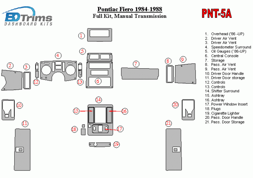 Pontiac Fiero 1984 - 1988 Dash Trim Kit