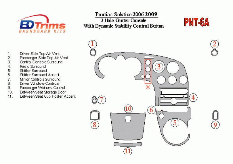 Pontiac Solstice 2006 - 2009 Dash Trim Kit