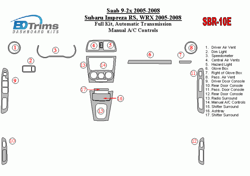 Full Kit, Automatic Transmission, Manual AC ControlMaterials