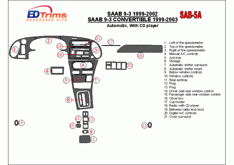 Saab 9-3 1999 - 2002 Dash Trim Kit