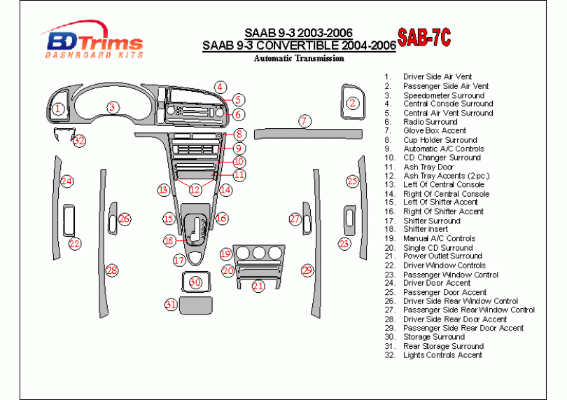 Saab 9-3 2003 - 2006 Dash Trim Kit