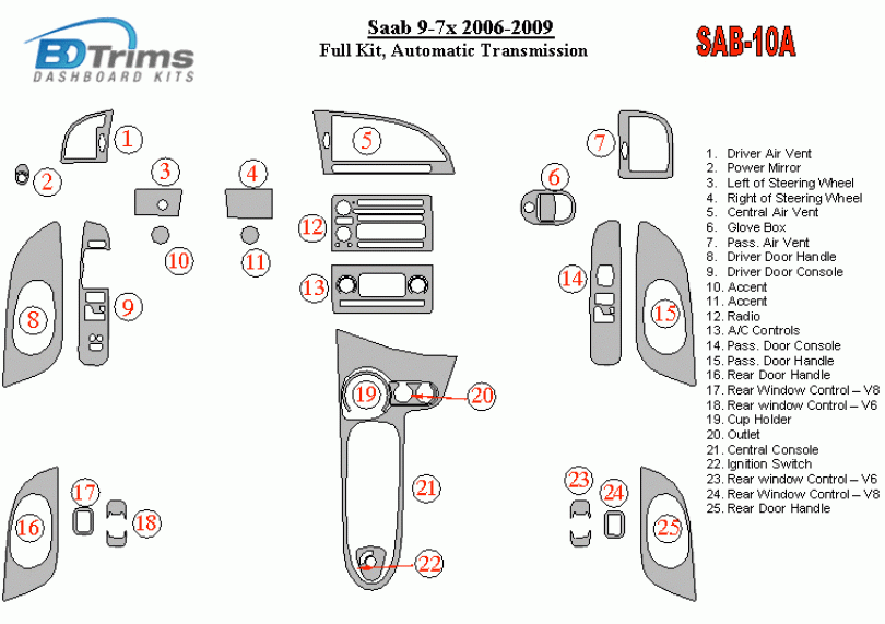 Saab 9-7x 2006 - 2009 Dash Trim Kit
