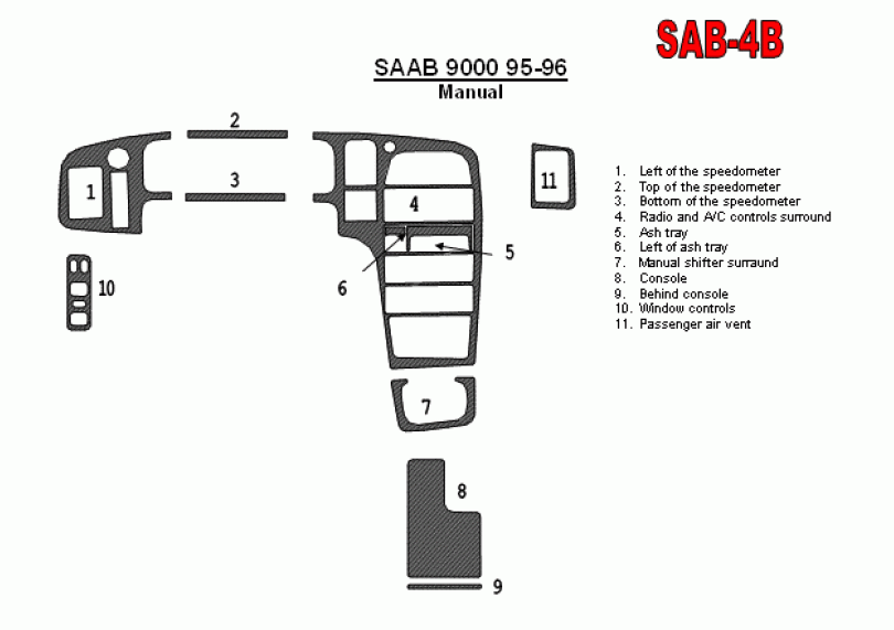 Saab 9000 1995 - 1996 Dash Trim Kit