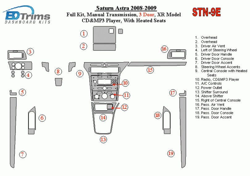 Saturn Astra 2008 - 2009 Dash Trim Kit