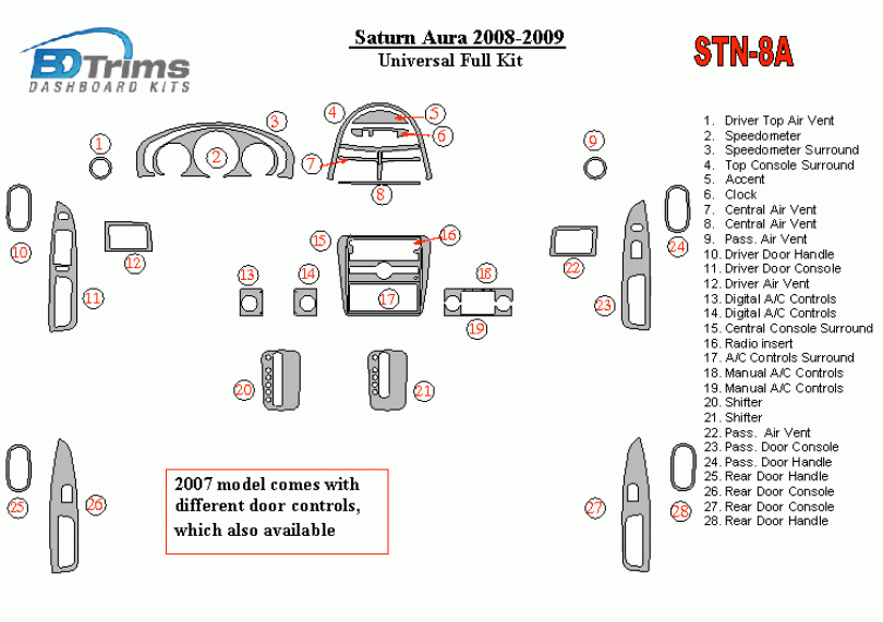 Saturn Aura 2008 - 2009 Dash Trim Kit