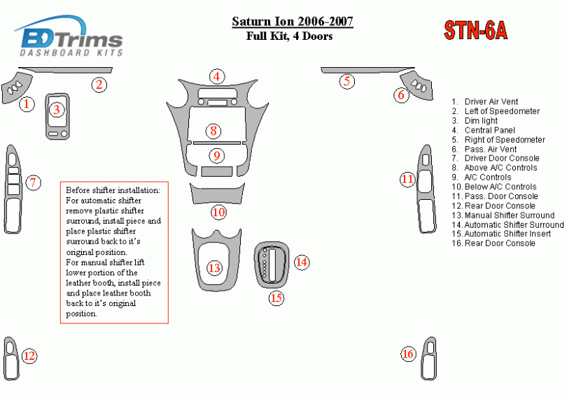 Saturn Ion 2006 - 2007 Dash Trim Kit