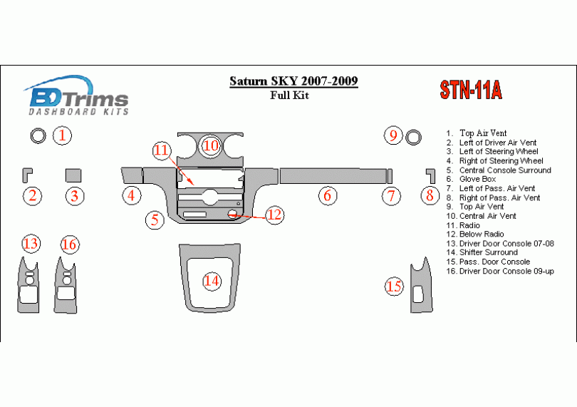Saturn Sky 2007 - 2009 Dash Trim Kit