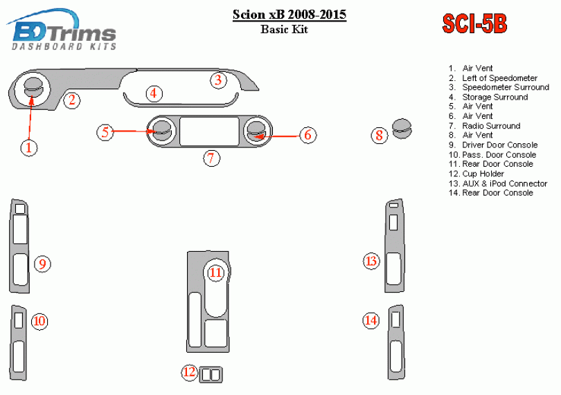 Scion xB 2008 - 2015 Dash Trim Kit