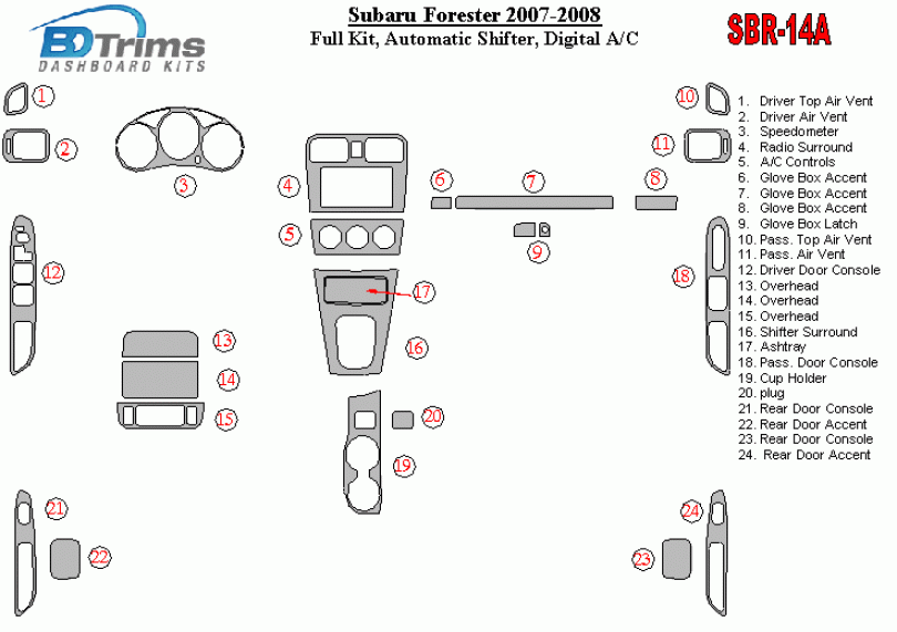 Subaru Forester 2007 - 2008 Dash Trim Kit