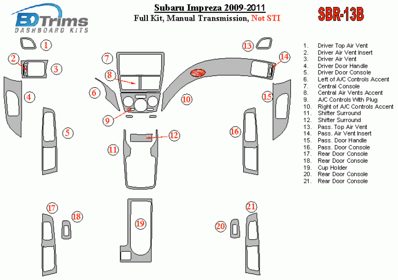 Subaru Impreza 2009 - 2011 Dash Trim Kit