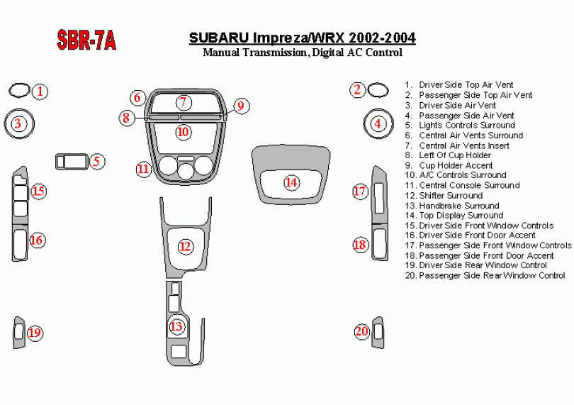 Subaru Impreza/WRX 2002 - 2004 Dash Trim Kit
