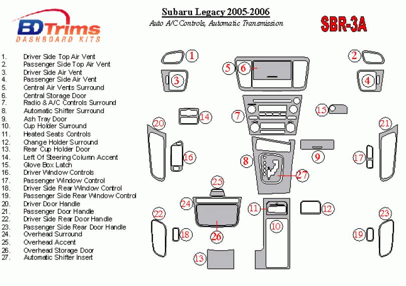 Subaru Legacy 2005 - 2006 Dash Trim Kit