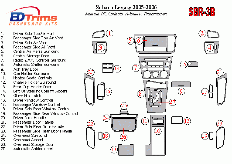 Subaru Legacy 2005 - 2006 Dash Trim Kit