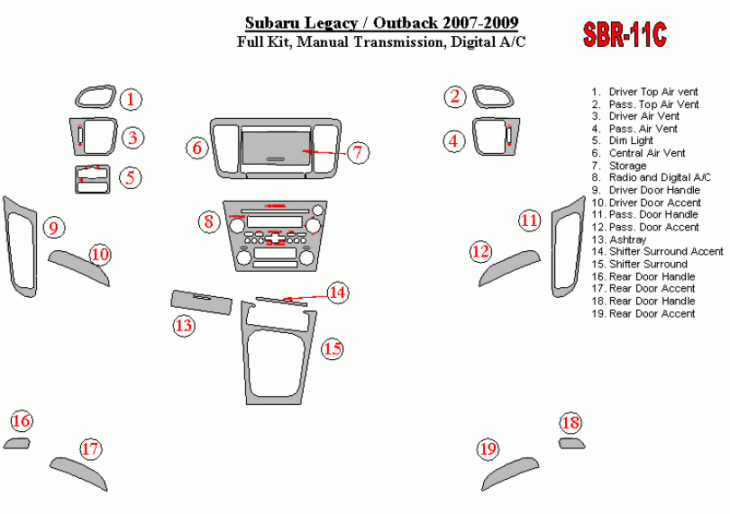 Subaru Legacy 2007 - 2009 Dash Trim Kit