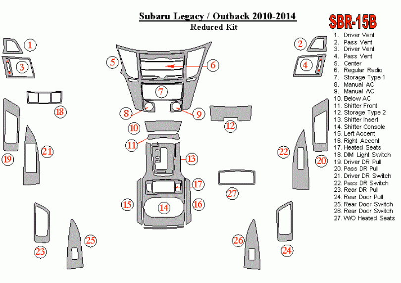Subaru Legacy 2010 - 2014 Dash Trim Kit