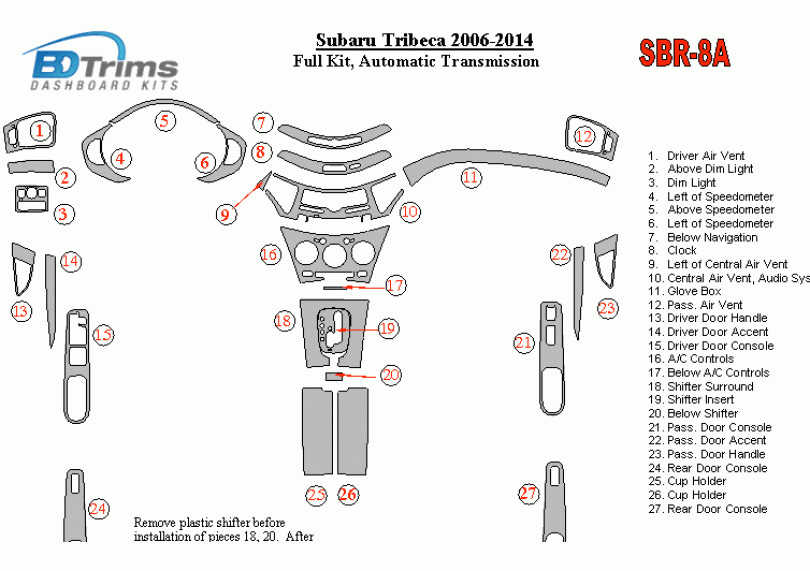 Subaru Tribeca 2006 - 2014 Dash Trim Kit