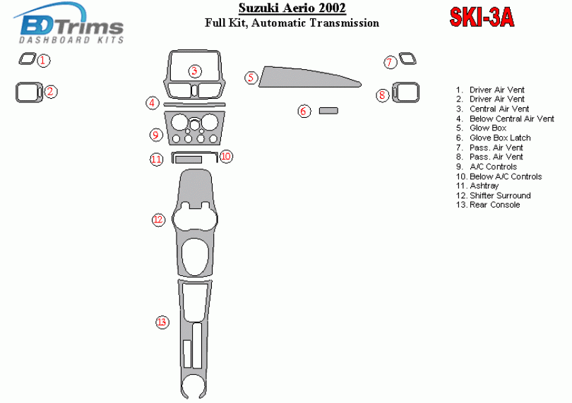 Suzuki Aerio 2002 - 2002 Dash Trim Kit