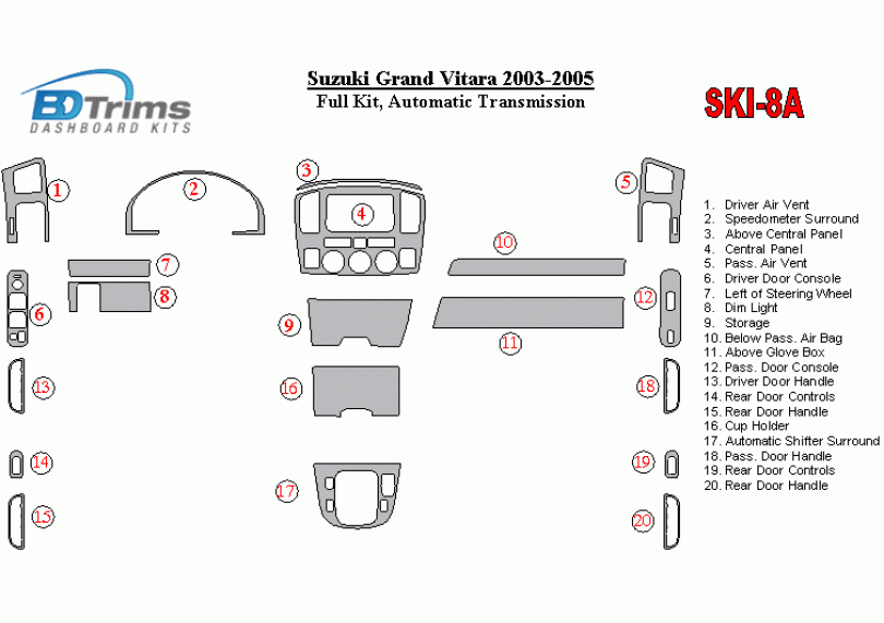 Suzuki Grand Vitara 2003 - 2005 Dash Trim Kit
